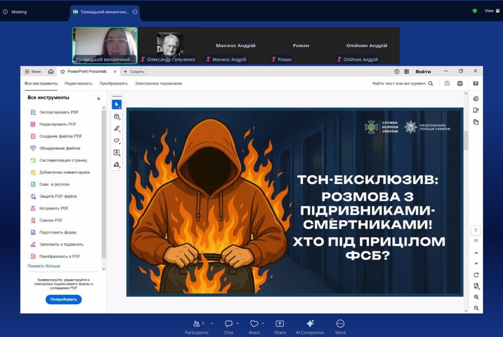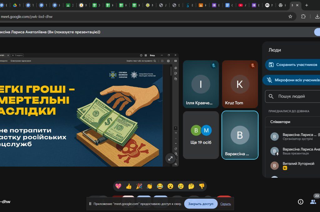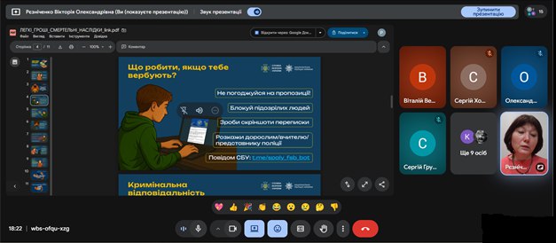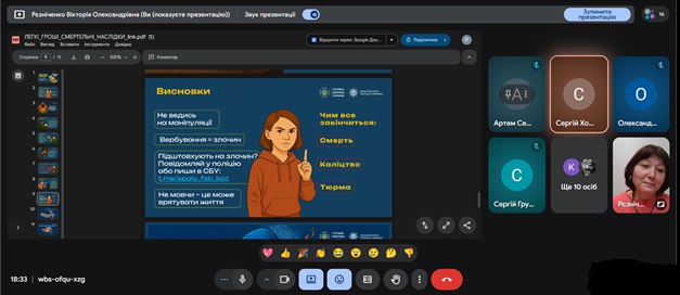 З метою забезпечення безпеки учасників освітнього процесу, недопущення втягнення здобувачів освіти у протиправну діяльність, попередження випадків вербування через мережу Інтернет, а також на виконання вимог чинного законодавства України у сфері національної безпеки класними керівниками зі здобувачами освіти коледжу були проведені тематичні виховні години щодо правил інформаційної безпеки та норм кримінального законодавства України. Було наголошено на наявності кримінальної відповідальності, у тому числі у вигляді позбавлення волі, навіть за одноразове виконання протиправних дій.