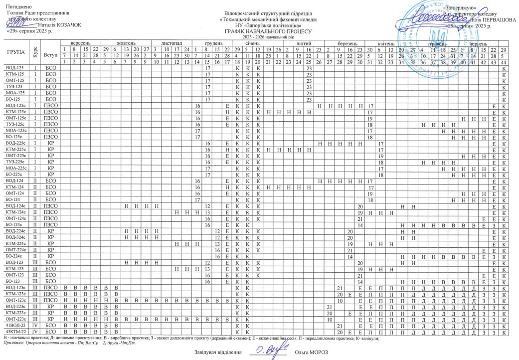 ГРАФІК НАВЧАЛЬНОГО ПРОЦЕСУ 2025-2026